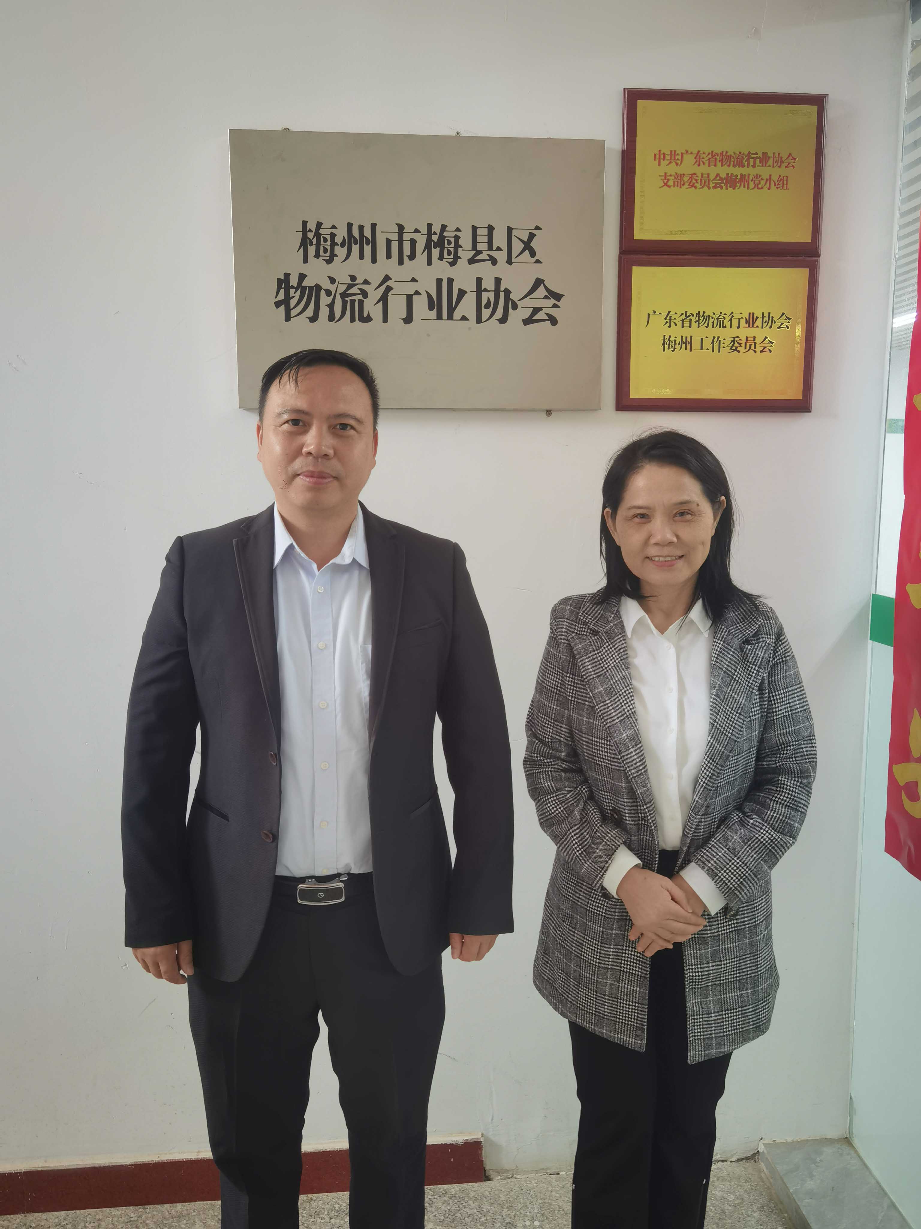 2月12日,協會秘書長胡梅到訪梅州市梅縣區物流行業協會調研,受到梅縣區物流行業協會秘書長李志敏的熱情接待。
