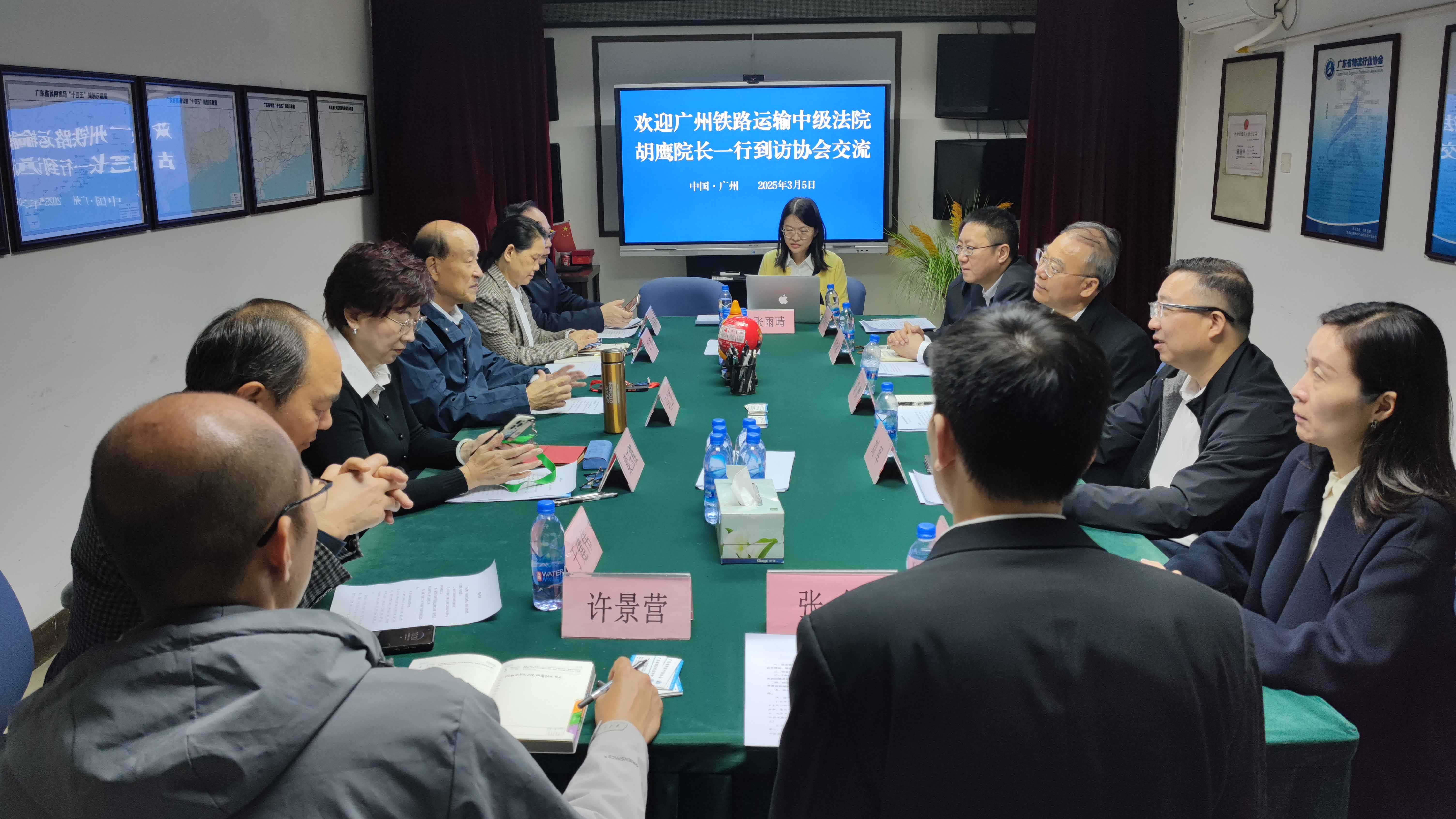 3月5日,廣州鐵路運輸中級法院院長胡鷹、副院長劉軍一行蒞臨協會交流,受到協會書記梁玉霞、執行會長馬仁洪和秘書長胡梅的熱情接待。