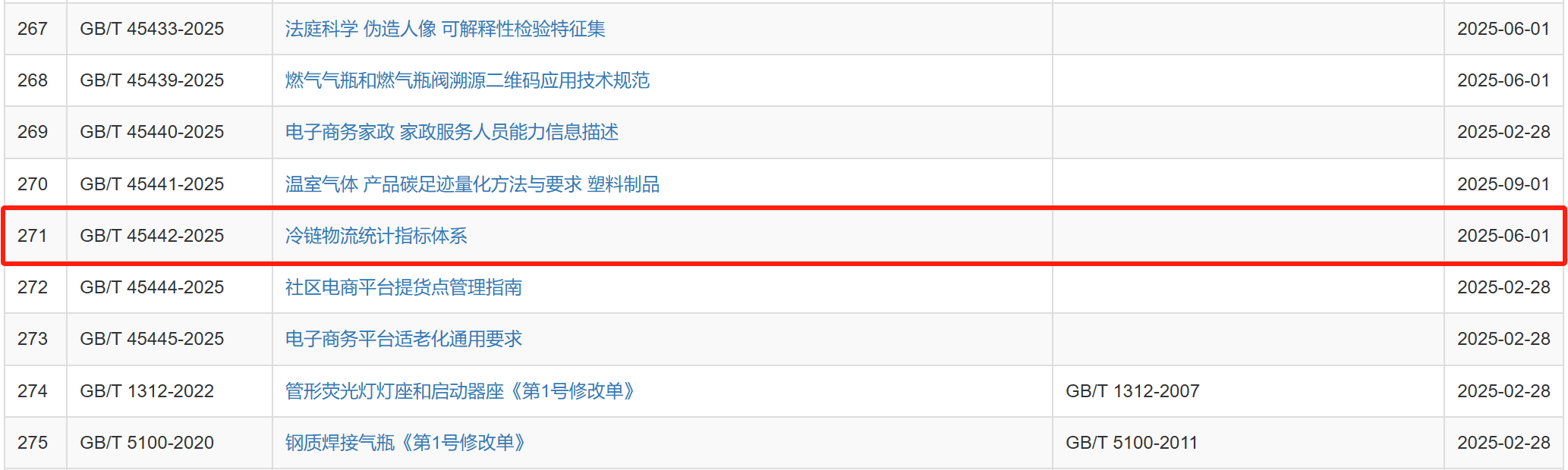 2025年2月28日,國家市場監督管理總局、國家標準化管理委員會批準發布282項國家標準,其中包括由全國物流標準化技術委員會提出并歸口的《冷鏈物流統計指標體系》(GB/T 45442-2025)和《物流企業冷鏈服務能力要求與評估指標》(GB/T 31086-2025)兩項國家標準。