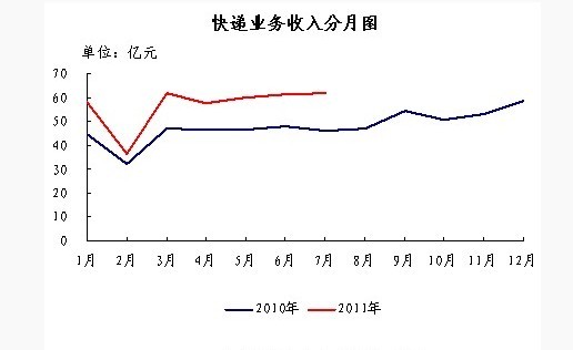 7月份,快遞業(yè)務(wù)量完成3.0億件,同比增長53.3%;業(yè)務(wù)收入完成61.5億元,同比增長33.7%。