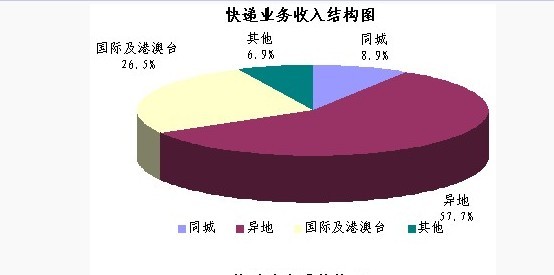 1-7月,同城、異地、國際及港澳臺(tái)快遞業(yè)務(wù)收入分別占全部快遞收入的8.9%、57.7%和26.5%;業(yè)務(wù)量分別占全部快遞業(yè)務(wù)量的22.9%、73.2%和3.9%。與去年同期相比,同城快遞業(yè)務(wù)收入的比重上升1.9個(gè)百分點(diǎn),異地快遞業(yè)務(wù)收入的比重上升3.3個(gè)百分點(diǎn),國際及港澳臺(tái)業(yè)務(wù)收入的比重下降了5.5個(gè)百分點(diǎn)。