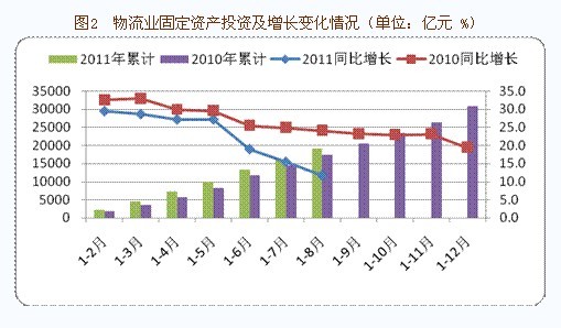 三、物流業固定資產投資增速回落,且幅度有所擴大
