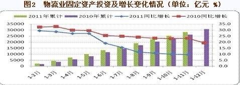 1-11月物流業固定資產投資完成額2.8萬億元,同比增長9.6%,增幅比1-10月回落0.3個百分點,比去年同期回落14個百分點,比同期城鎮固定資產投資增幅低14.9個百分點。其中,交通運輸業完成投資額1.9萬億元,同比出現今年以來的首次下降,究其原因主要是受鐵路運輸業投資下降,公路水路運輸業投資明顯放緩的影響。