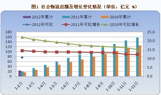 受國內外經濟增速趨緩以及春節假期等因素影響,今年1-2月份,我國物流需求增速有所回落,社會物流總費用增長平穩,物流業固定資產投資小幅下降,物流價格低迷,物流企業經營成本壓力仍然較大,實現利潤有所下滑。1-2月份我國物流運行的主要特點是: