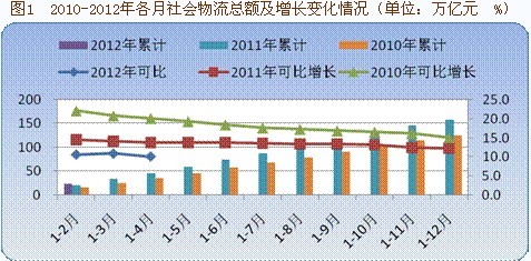 1-4月我國物流運(yùn)行總體平穩(wěn),社會(huì)物流需求回落,但依然保持較快增長。社會(huì)物流總費(fèi)用增長較快,物流業(yè)增加值穩(wěn)步增長,同時(shí)物流業(yè)固定資產(chǎn)投資繼續(xù)回落,物流服務(wù)價(jià)格仍保持低位,物流企業(yè)效益下滑。
