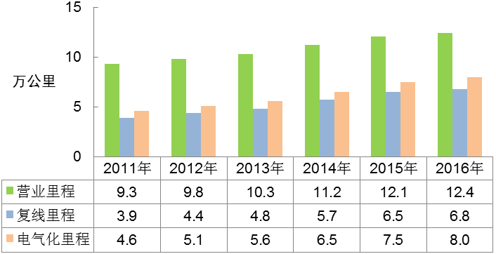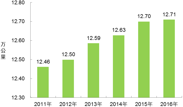 圖1 2011-2016年全國鐵路營業(yè)里程