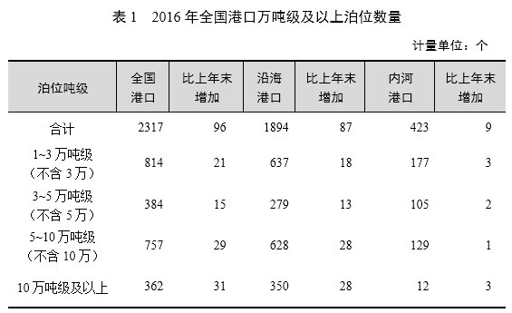 年末全國港口擁有萬噸級及以上泊位2317個,比上年增加96個。其中,沿海港口萬噸級及以上泊位1894個,增加87個;內(nèi)河港口萬噸級及以上泊位423個,增加9個。