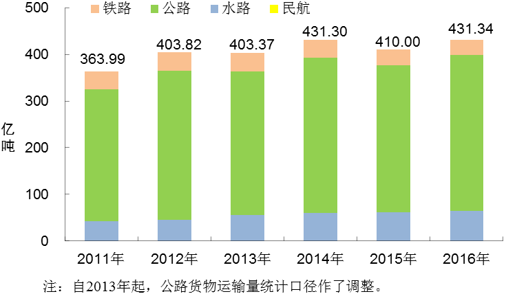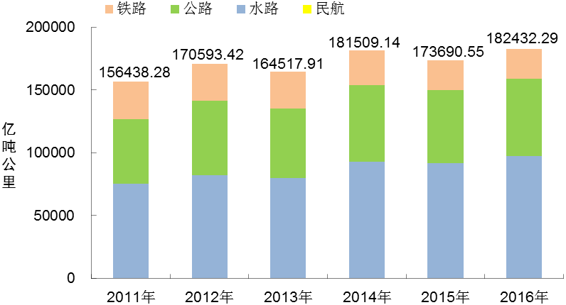圖11 2011-2016年全社會貨物周轉(zhuǎn)量