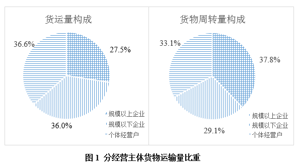 2019年9月規(guī)模以上企業(yè)、規(guī)模以下企業(yè)、個(gè)體戶分別完成貨運(yùn)量8.75、11.44、11.63億噸,占比為27.5%、36.0%、36.6%;貨物周轉(zhuǎn)量2125.26、1637.20、1865.62億噸公里,占比為37.8%、29.1%、33.1%;平均運(yùn)距分別為243、143、160公里。