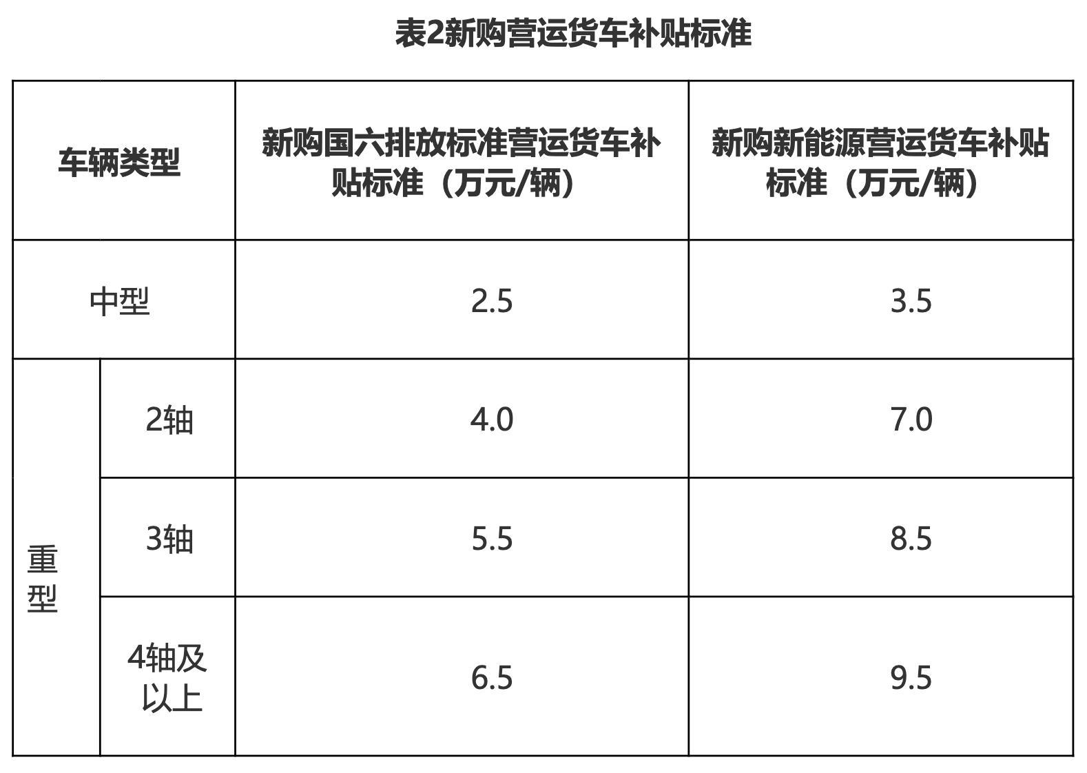 (二)提前報廢名下國四及以下排放標準中型、重型營運貨車并新購國六排放標準貨車或新能源貨車。