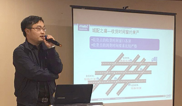 來自唯智物流鏈副總裁王維峰從關于城配之痛到如何完美解決及城市配送信息化建設做了全面深入講解,并完整的展示唯智的產品、實力及戰略規劃。